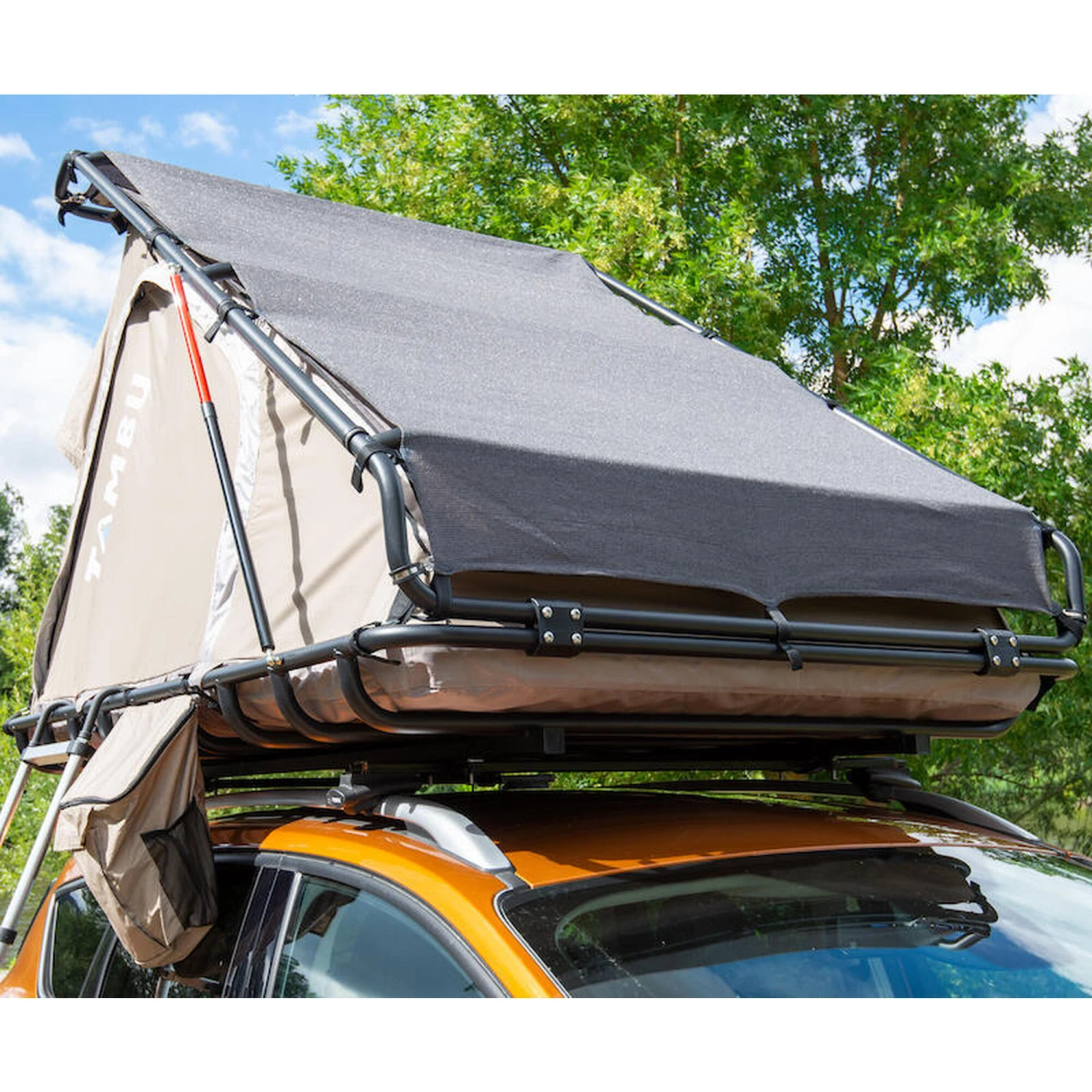 Tente de toit légère à fixer sur presque tous les modèles de véhicules courants (env. 38 kg), échelle télescopique en aluminium incluse, matelas gonflable inclus, fenêtres en TPU, ciel étoilé.