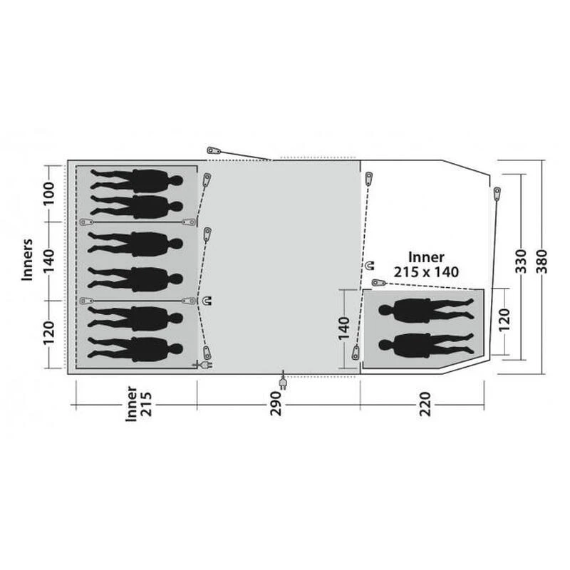 La tente de camping Outwell Westwood 8 en polyester est composée de 4 chambres pouvant accueillir 8 personnes.